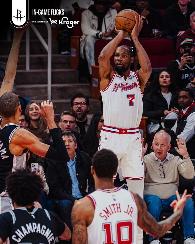 马刺队的文班亚马得到28分、16个篮板和4次助攻,福克斯得到18分、5个篮板和8次助攻,约翰逊得到17分、7个篮板和5次助攻,卡斯尔得到16分、5个篮板和6次助攻,哈珀得到16分。火箭队的汤普森得到25分和7个篮板,杜兰特得到24分和6次助攻,他生涯命中三分球数超越卡特升至历史第10位。申京得到18分、10个篮板和7次助攻,伊森得到10分,谢泼德得到9分和5个篮板。