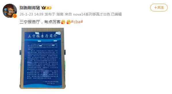 北京时间1月30日,根据媒体人别跑刚背猪报道,北控男篮国手辽宁三宁早在2024年,曾经给母校广西体育高等专科学校捐款30万元,用于装修工程修建报告厅,并且被命名为“三宁报告厅”。