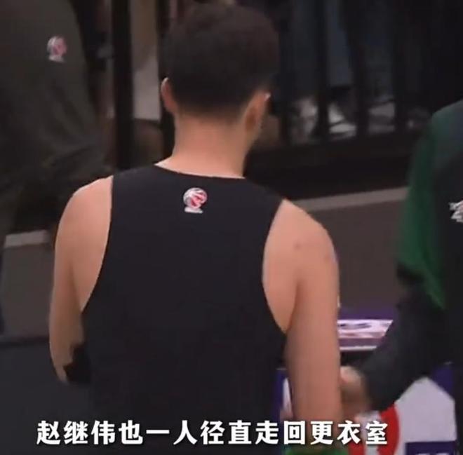 输给山东队之后,刚复出不久的赵继伟,也没有和队友一起在中圈加油。