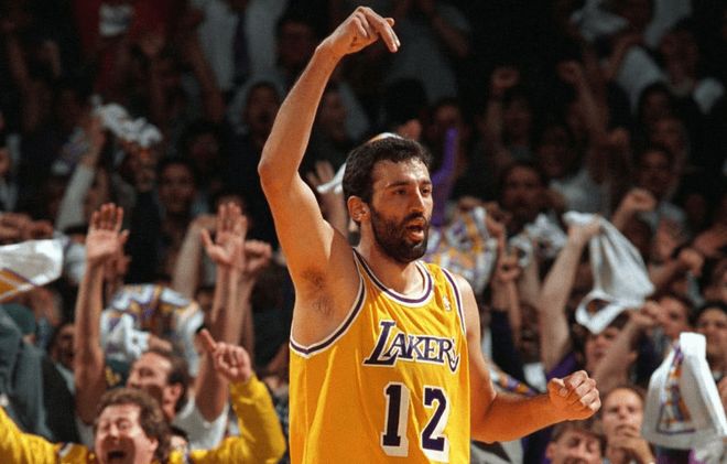 不过,迪瓦茨并没有选择离开,而是与紫金军团荣辱与共。而他一待,就是整整7年的时间,尤其是在94-95赛季,他场均可以得到16分、10.4个篮板、4.1次助攻、1.4次抢断和2.2次盖帽,成为了球队的核心之一,欧洲球员特有的组织能力,也是得到了极致的开发,完全就是现在尼古拉·约基奇打法的雏形。
