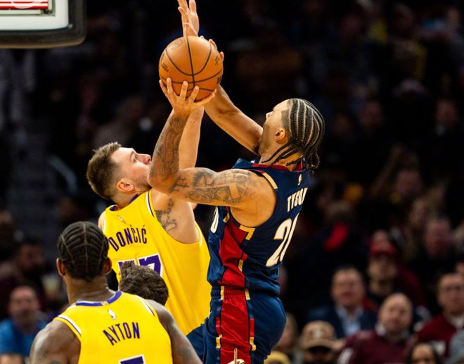 首先,骑士本赛季战绩并不算特别好,30胜21负暂时只排名东部第五,胜率58%放在西部也只能排名第八。如果只看这个成绩,那一定会被蒙蔽,因为高阶数据呈现了两个极端。先看看加兰对骑士的伤害有多大:本赛季加兰在场时,骑士百回合输对手2.6分,防守效率是119.7;当加兰不在场时,骑士百回合能赢对手5.9分,防守效率是112.5。百回合赢对手5.9分,大致相当于尼克斯,联盟第四的水准。简单来说,从上赛季起,骑士呈现出来的表现就是,大家在扛着加兰前进,没防守,没对抗,投射效率下滑,关键饱受伤病困扰。
